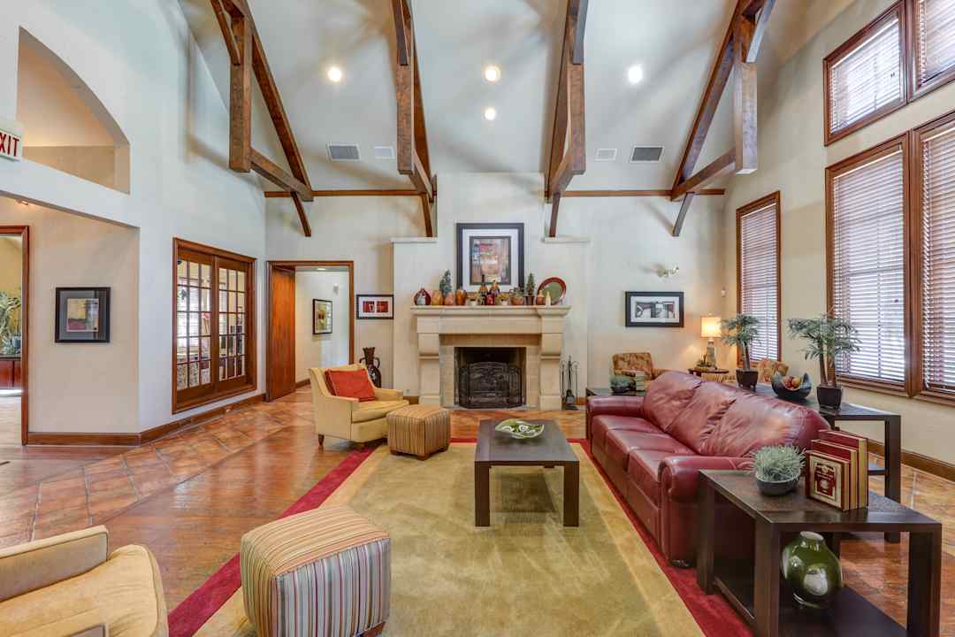 Apartments at Seven Oaks Apts are equipped with Wood-burning fireplaces Nine-foot or vaulted ceilings and Hardwood floor entry and have rental rates ranging from 1269 to 1644.